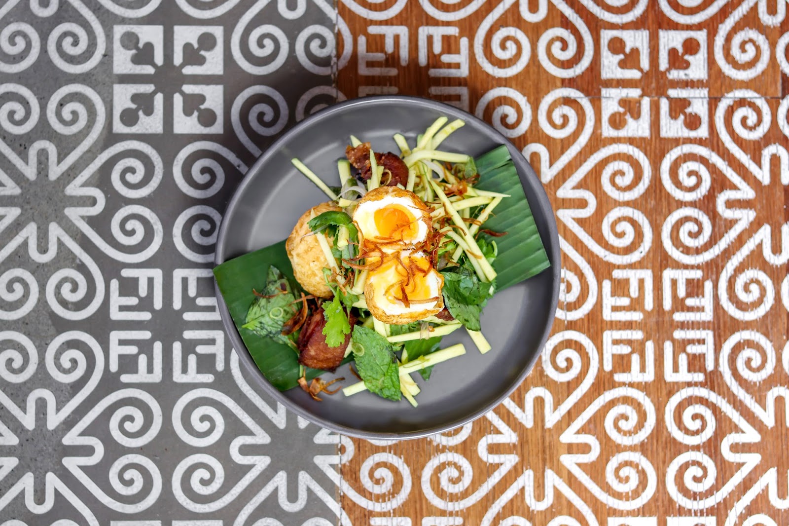 We also had chargrilled prawns served with a roasted shallot and lime sauce, kingfish sashimi with caramelised cashews and trout roe, and crispy chicken ribs with Bang Bang sriracha. Vegetarians need not fear though. I had some special dishes made for me with the standout being a take on an egg salad served with a son in law egg, green mango and a basil and lime dressing. It was amazing and I could have easily eaten about eleven serves of this alone.